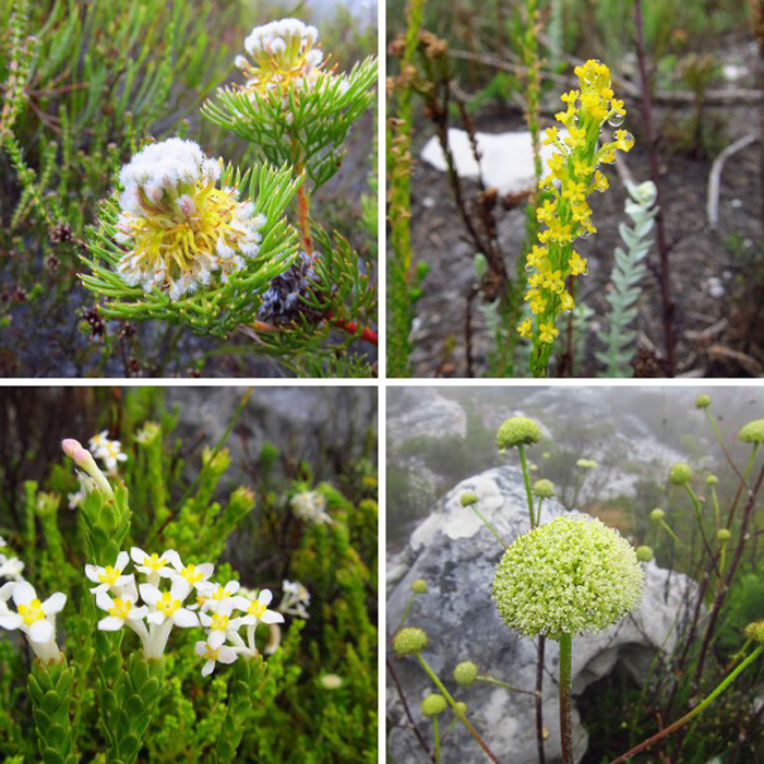 Ascend Skeleton Gorge, the most direct (and arduous) route to the aqueduct where scarlet Disa uniflora and shy Disa longicornu occur, their feet in clear mountain spring water, and you discover that there are in fact mountains within the mountain. Table Mountain might appear famously flat when viewed from the north, but on its summit a new world appears. Kloofs, cliffs, streams and peaks reveal the environment that makes Cape Town unique: a city wrapped around a national park. Microclimates created by sun-blistered rock, cold gale force winds, sandy soils, variable winter rain, dripping moss sheets, mist-wrapped peaks, sharp kloofs, and heat-scorched slopes are host to an intoxicatingly diverse floral world.